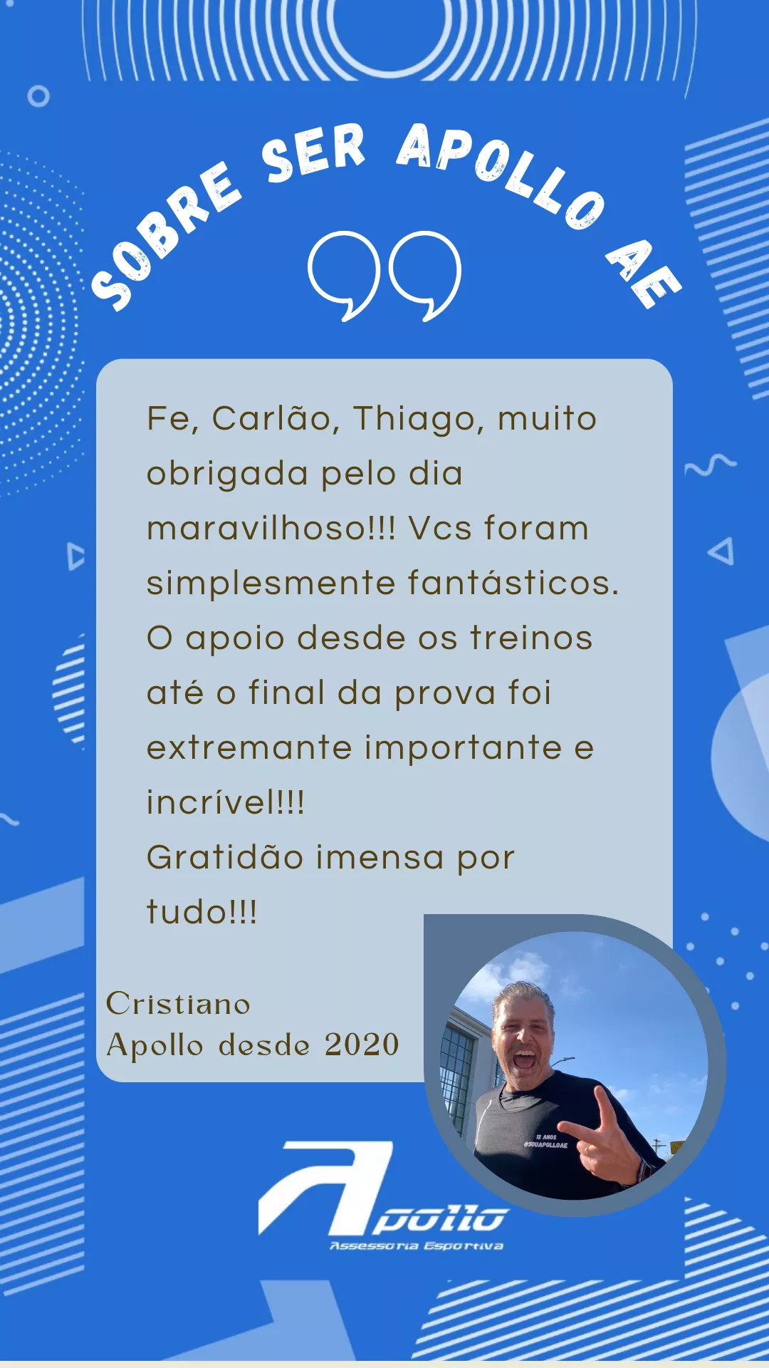 Há 15 anos, ele transforma vidas através da corrida de rua, treinando centenas de pessoas desde o início até seus primeiros 5 quilômetros, em alguns casos à primeira maratona e ajudando corredores experientes a alcançar novas distâncias e recordes pessoais.